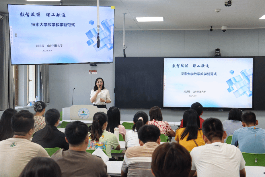 教师教学能力和数字素养,2024年教师节之际,学院邀请山东省教学名师、山东省示范性基层教学组织负责人、山东科技大学刘洪霞教授作题为“数智赋能 理工融通——探索大学数学教学新范式”的学术报告。学院党委书记崔英静出席报告会,学院各系部教师参加报告会,会议由学院副院长王洪凯主持。