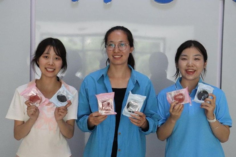 校徽图案的月饼,一口饼香知时节,味至浓时即为家,这一抹甜不仅仅是味蕾上的享受,更是心灵上的慰藉,承载着学院对新生们深深的关怀与祝福。老师们亲手将这份心意传递给每一位同学,现场欢笑声此起彼伏,温馨又幸福的氛围让人沉浸其中。
