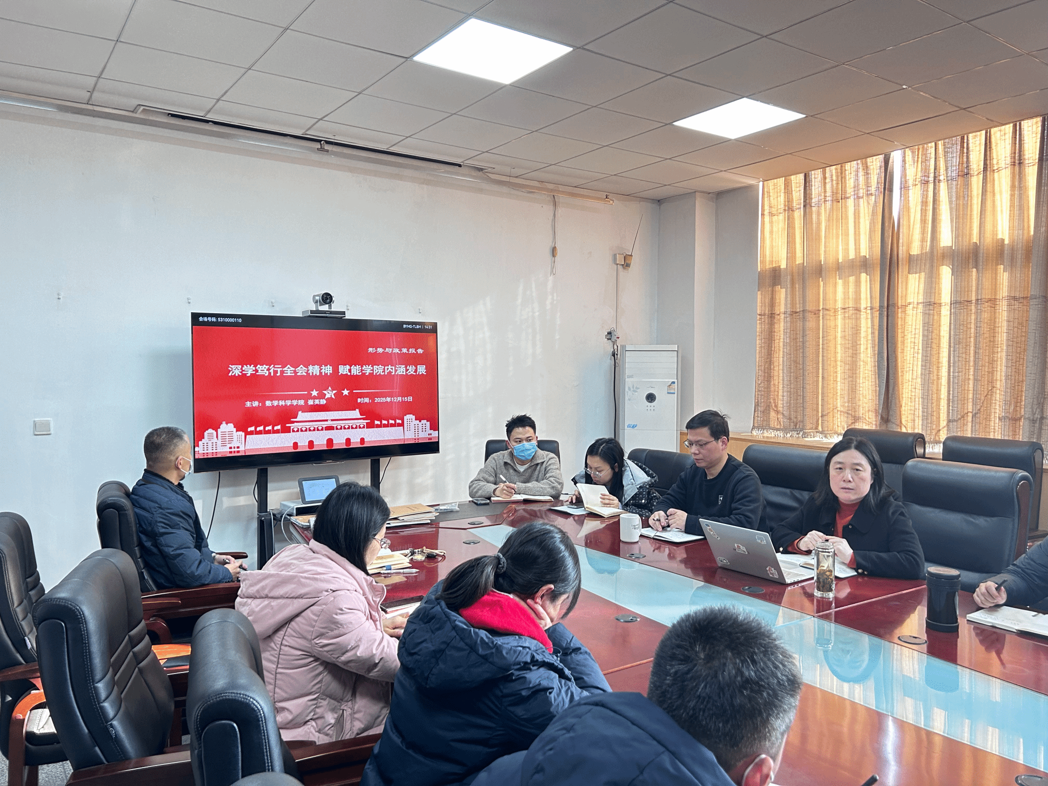 为深入学习贯彻党的二十届四中全会精神,切实把思想和行动统一到党中央决策部署上来。近日,学院党委书记崔英静以“深学笃行全会精神,赋能学院内涵发展”为题,分别为学院领导班子成员、各系部主任、科级干部以及大学数学教研部党支部作了形势与政策报告,为大家宣讲党的二十届四中全会精神,共同凝心聚力推进学院发展。