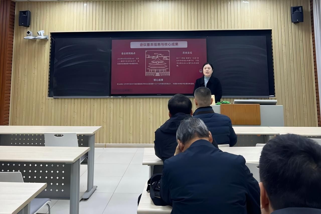 报告会上,崔英静围绕全会的核心要义,从五大维度深入解读全会精神。她指出,党的二十届四中全会为教育事业高质量发展指明了方向,学院作为人才培养和科技创新的重要阵地,必须把学习贯彻全会精神作为当前和今后一个时期的重要政治任务,将全会精神与学院发展实际紧密结合。