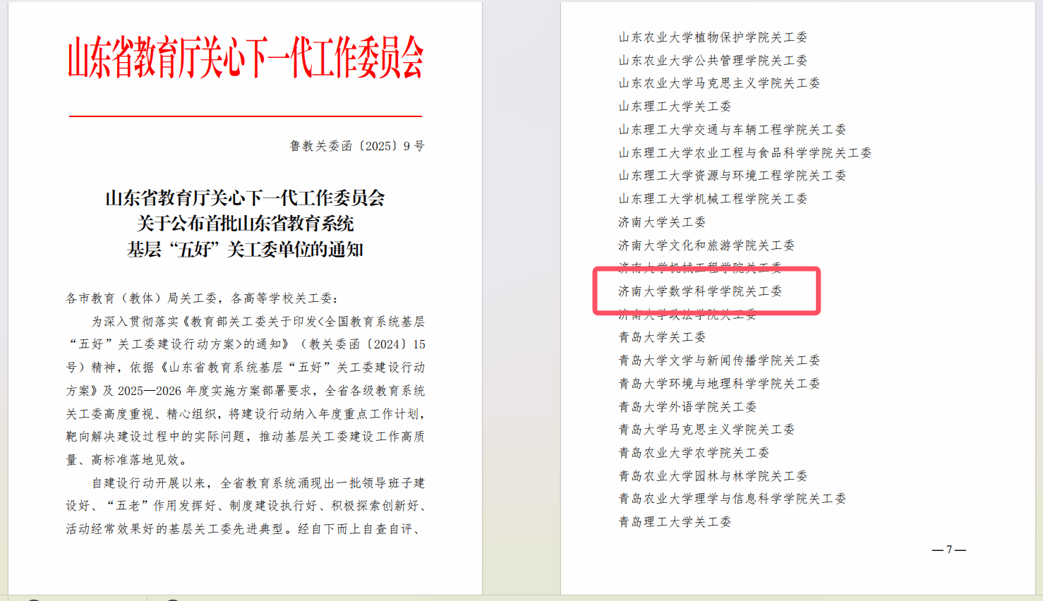 近日,山东省教育厅关心下一代工作委员会公布首批山东省教育系统基层“五好”关工委单位名单,91福利