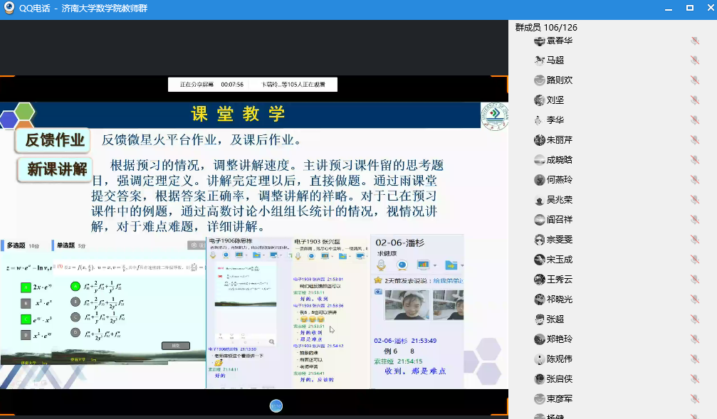 教师承担了20余门专业课和面向全校6000余名一年级学生开设的数学公共课教学工作,教学任务繁重,学生学习环境复杂。开展线上教学两周以来,91福利