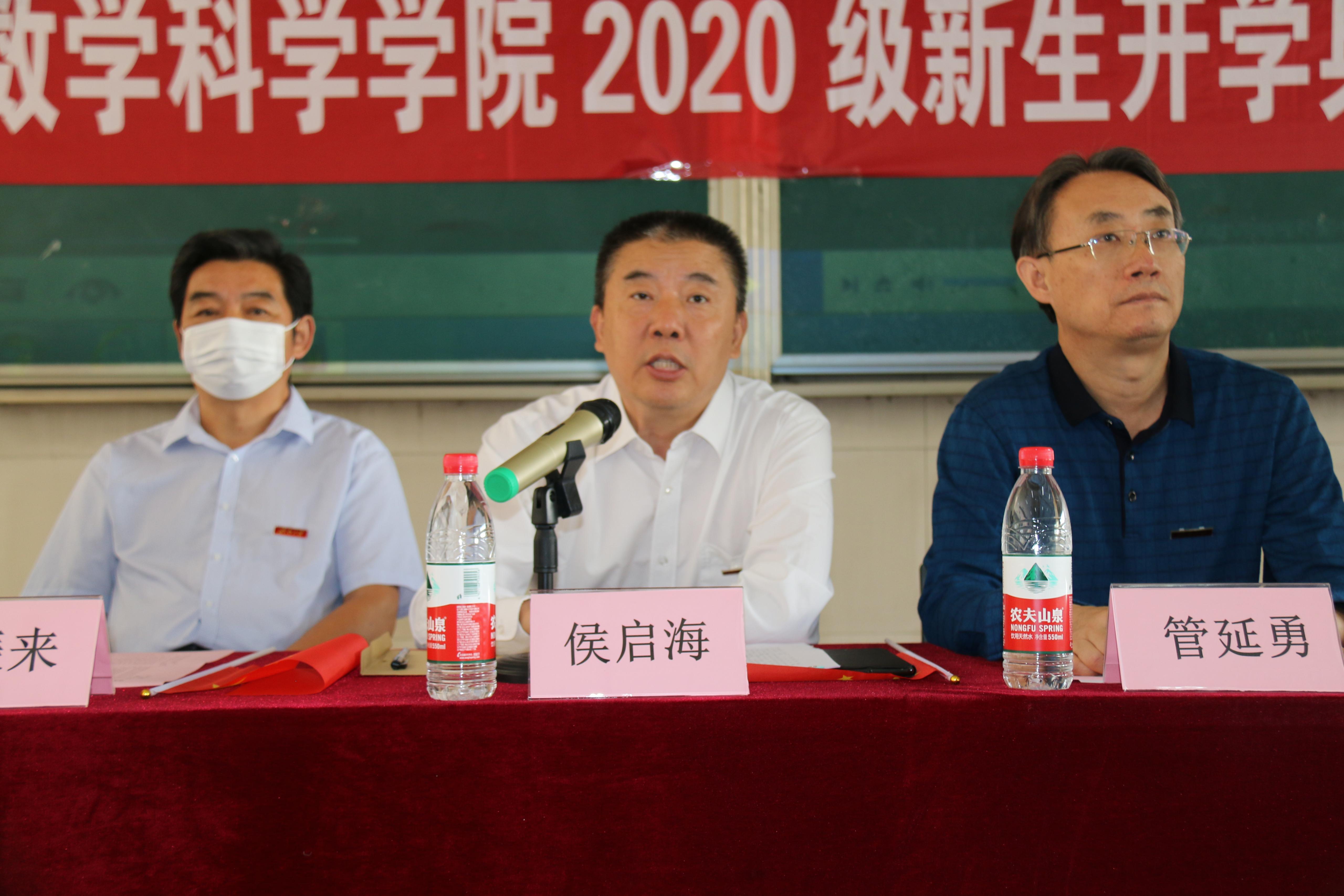 2020级新生开学典礼在星硕举行。学院党委书记侯启海、学院院长管延勇、学院正处级组织员韩振来、学院党委副书记、副院长张沂红,学院副院长王洪凯、数学与应用数学系主任李凡军、金融数学系主任温凤桐、科学计算与数据分析系主任靳邵礼出席开学典礼,学院教授代表、新生班主任、学生工作人员、助理班主任以及全体2020级新生参加开学典礼。典礼由学院党委副书记、副院长张沂红主持。