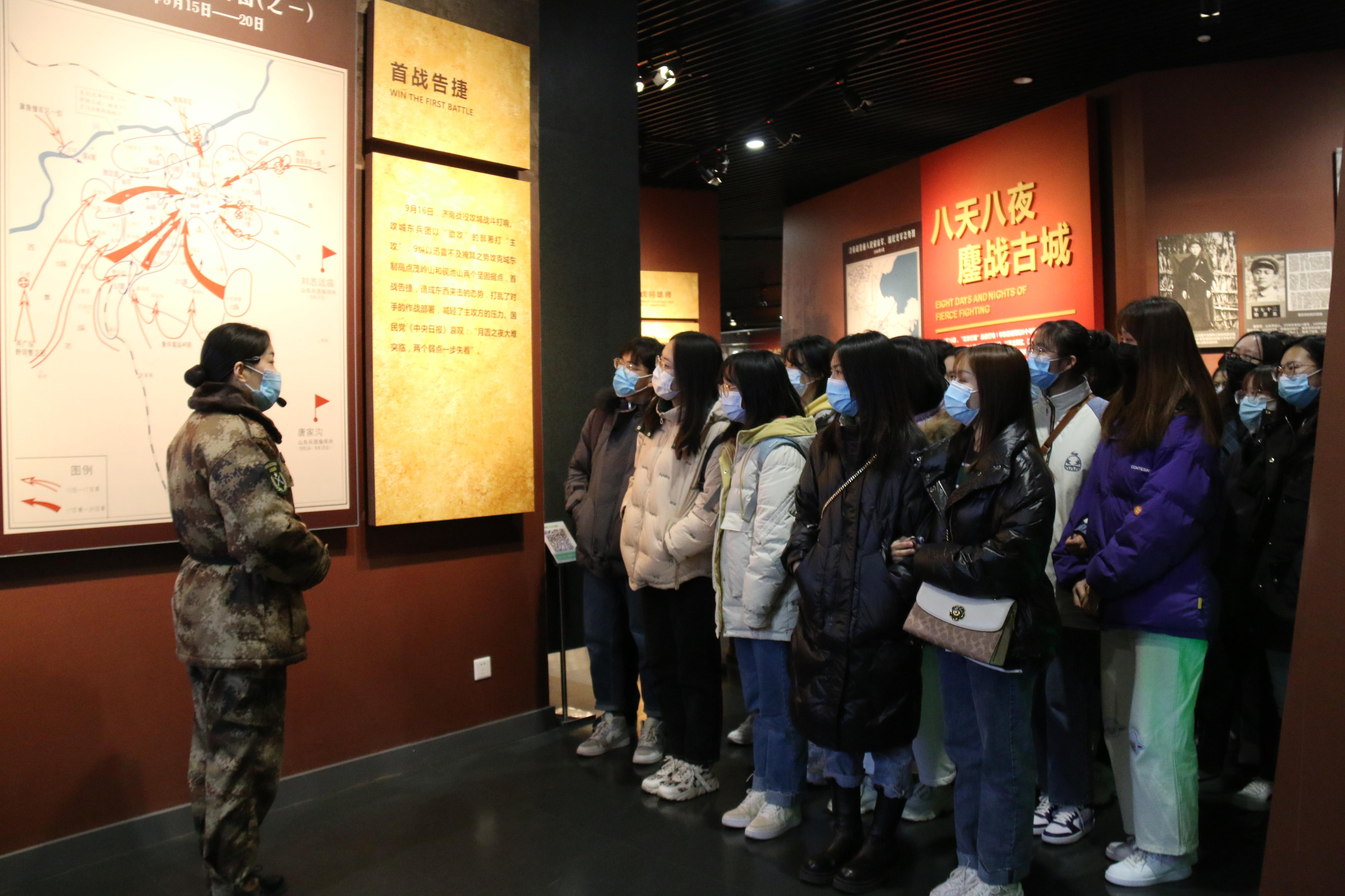 济南战役是人民解放军第一次攻克国民党军重兵守备、坚固设防的大城市攻坚战,也是蒋介石集团以大城市为主的“重点防御”体系总崩溃的开始。毛泽东同志盛赞济南战役是一场“伟大胜利”。在纪念馆解说员的带领下,大家依次参观了“和战博弈,齐鲁硝烟”、“运筹帷幄,剑指济南”、“厉兵秣马,蓄势待发”、“八天八夜,鏖战古城”、“战略决战,凯歌行进”等七个展厅。展馆中一张张历史照片,重现了当年济南攻坚战激烈壮观的场面,一件件真实遗物展现了革命烈士不畏牺牲、艰苦奋斗的革命决心。
