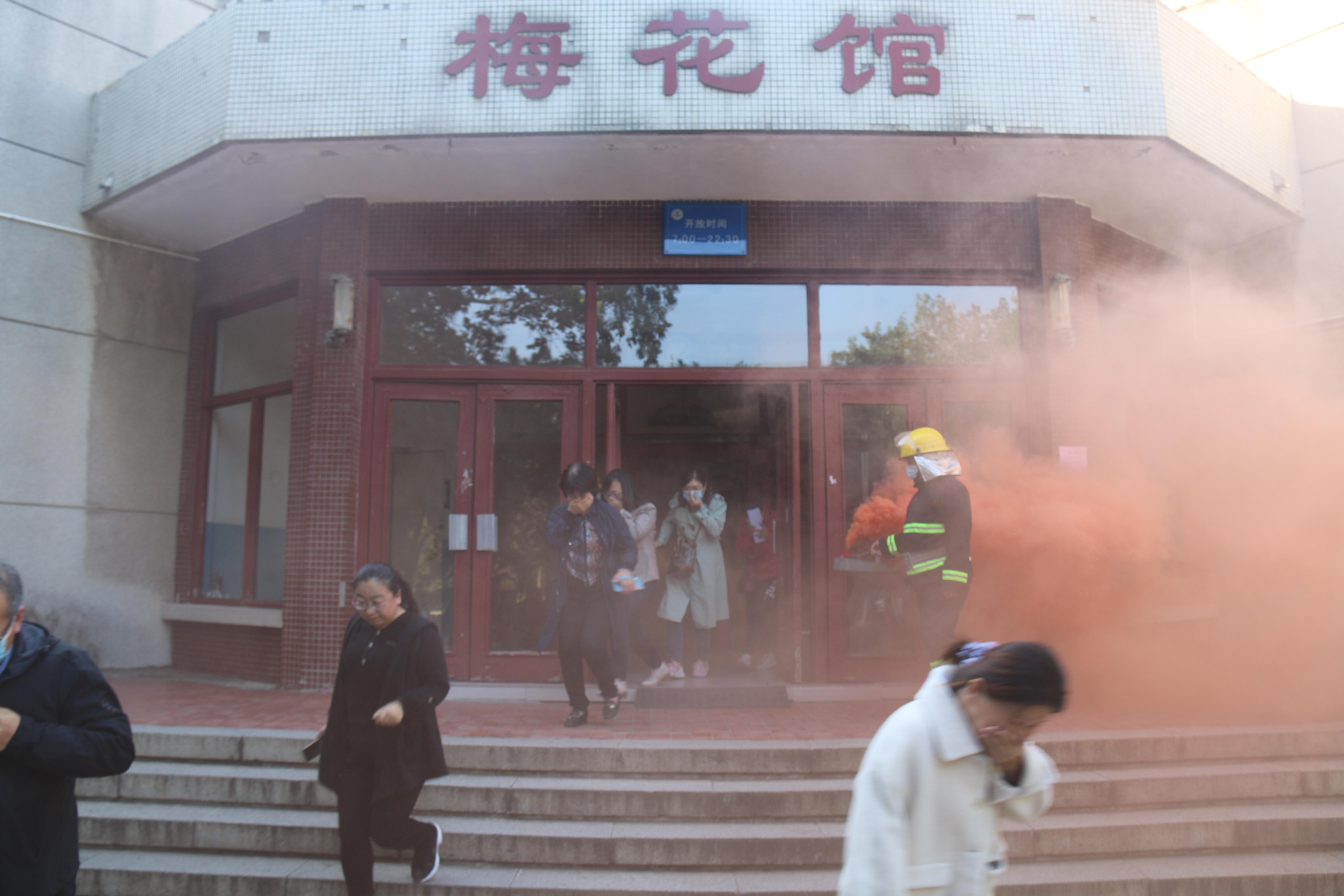 会后,学院举行了消防安全教育暨灭火逃生疏散演练,全体教职工、研究生参加演练。演练前,学校安全管理处消防管理科相关人员为全体教职工普及了消防安全知识,详细介绍了灭火器的使用方法与注意事项。逃生疏散环节,消防工作人员在梅花馆门前设置了模拟烟雾逃生场景,警报响起,教职工捂住口鼻,做好防护,依次有序地撤离到安全地带。演练过程中,全体教职工和研究生全员参与到灭火实战中,“提、拔、握、对、喷”,每一步都力争做到精准。经过实战演练,有效提升了师生员工的疏散逃生和灭火实战能力。