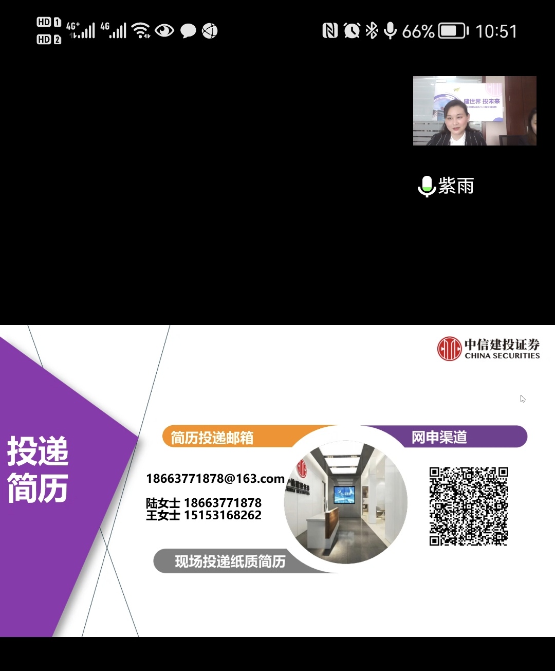 首先,中信建投证券济南龙奥北路证券营业部总经理陆媛媛简单介绍了公司的基本情况。中信建投证券成立于2005112日,是经中国证监会批准设立的全国性大型综合证券公司。随后,陆媛媛总经理详细介绍了公司目前所招聘的岗位、招聘对象、任职条件及岗位职责,并为同学们清晰的讲解了入职后的培训计划、晋升空间及薪资待遇。讲解过程中,还邀请了高校往届毕业生介绍了自己在中信建投证券的成长经历,加深了同学们对公司的了解。最后,主持人发起互动提问环节,同学们热情提问,陆媛媛总经理就同学们的提问做了详细解答。
