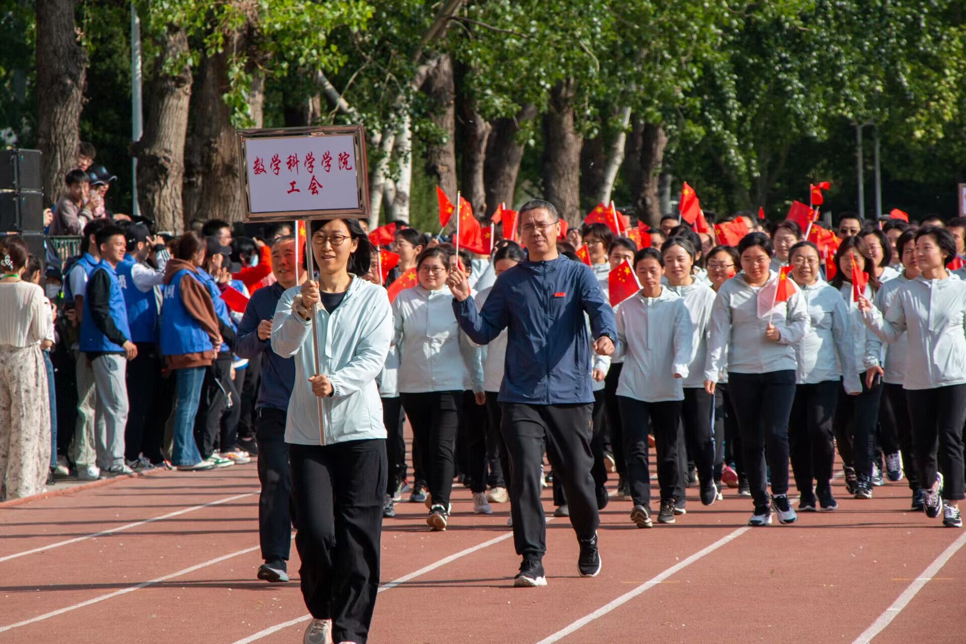 2019级学子范奕琳在主席台上代表全体运动员庄严宣誓。开幕式在活力健身操中落下帷幕。雄心依旧在,壮志胜从前。在运动会期间,时代的强音在数院老师和同学脚下奏响,青春的速度与激情尽情的展露。学生组的比赛如火如荼的进行,跑步运动员站在雪白的起跑线,冲刺,跑出了自己无数次期待的样子,以拼搏换得成长,用汗水铸就辉煌;跳远运动员轻盈一越,铅球运动员奋力一掷,在空中亦是美丽的弧线。在接力赛场上,接力棒在手中传递,欢呼声在观众席上传递,运动员伴着喝彩声冲过终点,冲向青春的荣誉与骄傲。精彩的还有教职工组,“一支粉笔写春秋,三尺讲台生春风”的老师们在田径场上尽显飒爽风姿,篮球和足球的弧度勾勒出道道靓丽的风景线;飞镖和沙袋投准精准与速度的并举;实心球被推远,恒心与实力在展现……当老师走下三尺讲台,走上赛场,他的满园桃李心连心,为恩师献上掌声和尊重。鲜花与掌声属于每一个人,91福利