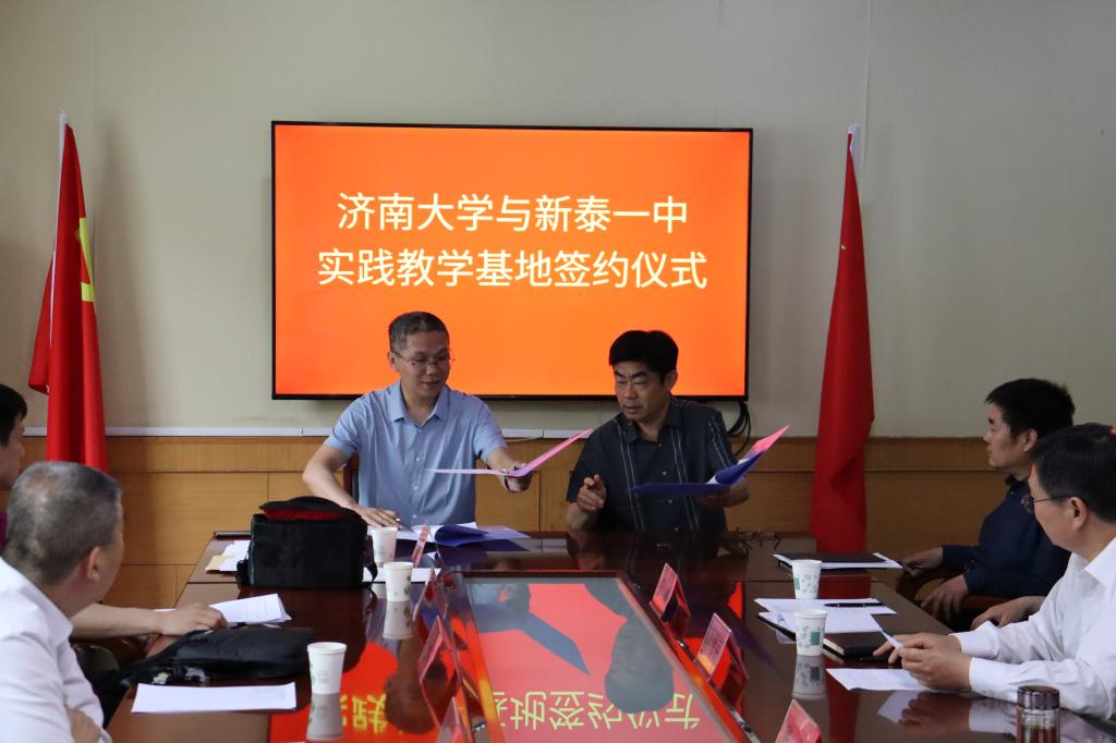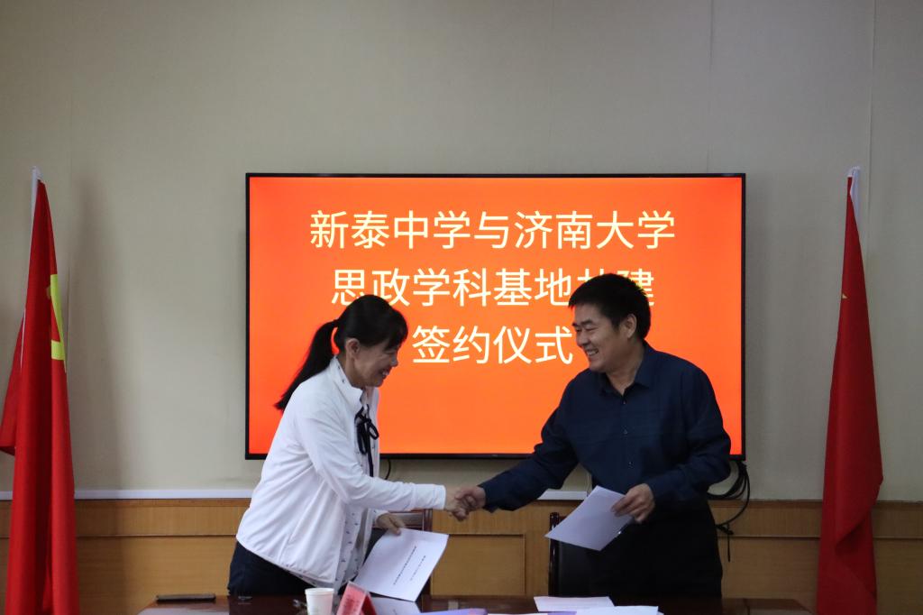 与新泰市第一中学签订了实践教学基地、就业实习基地,与新泰中学签订了优秀生源地、数学学科、思政学科共建合作协议,并举行了授牌仪式。