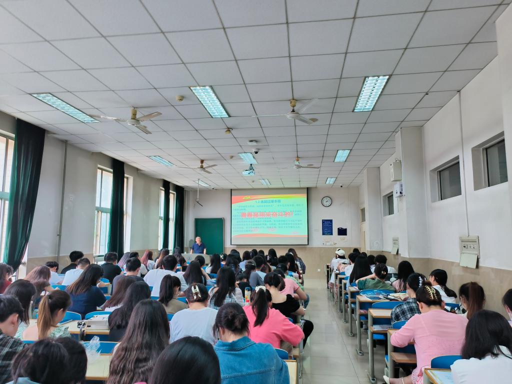党委书记侯启海为毕业生讲授专题党课和廉洁思政课,2023届全体毕业班党员参加学习。