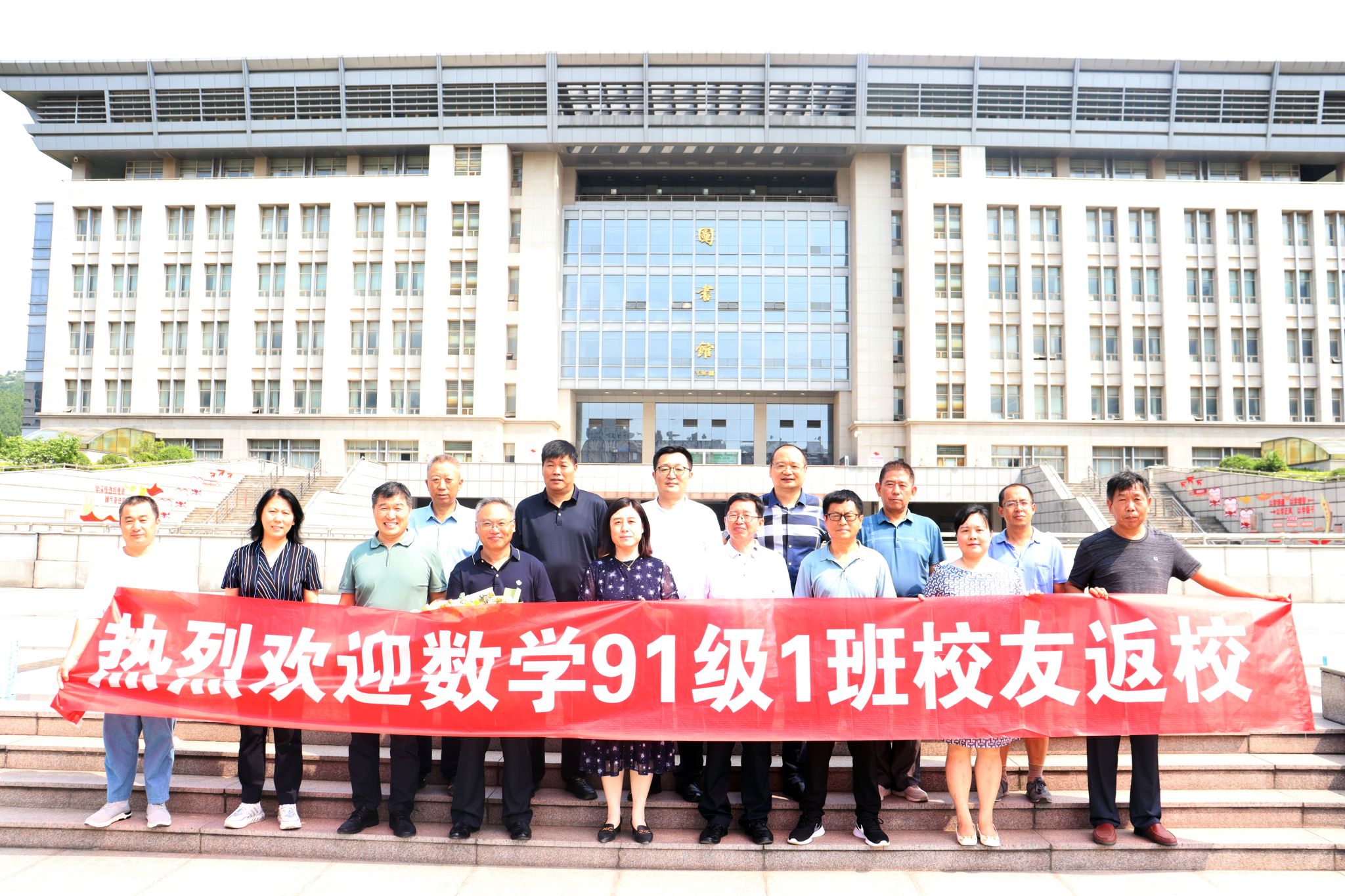 建校75周年之际,8月5日,学院91级数学1班校友重返母校,再叙师生情。学校校友办副主任李仲涛、学院党委书记崔英静,党委副书记、副院长张沂红、91级数学1班班主任杨殿武、学办主任吴立军等参加本次活动。