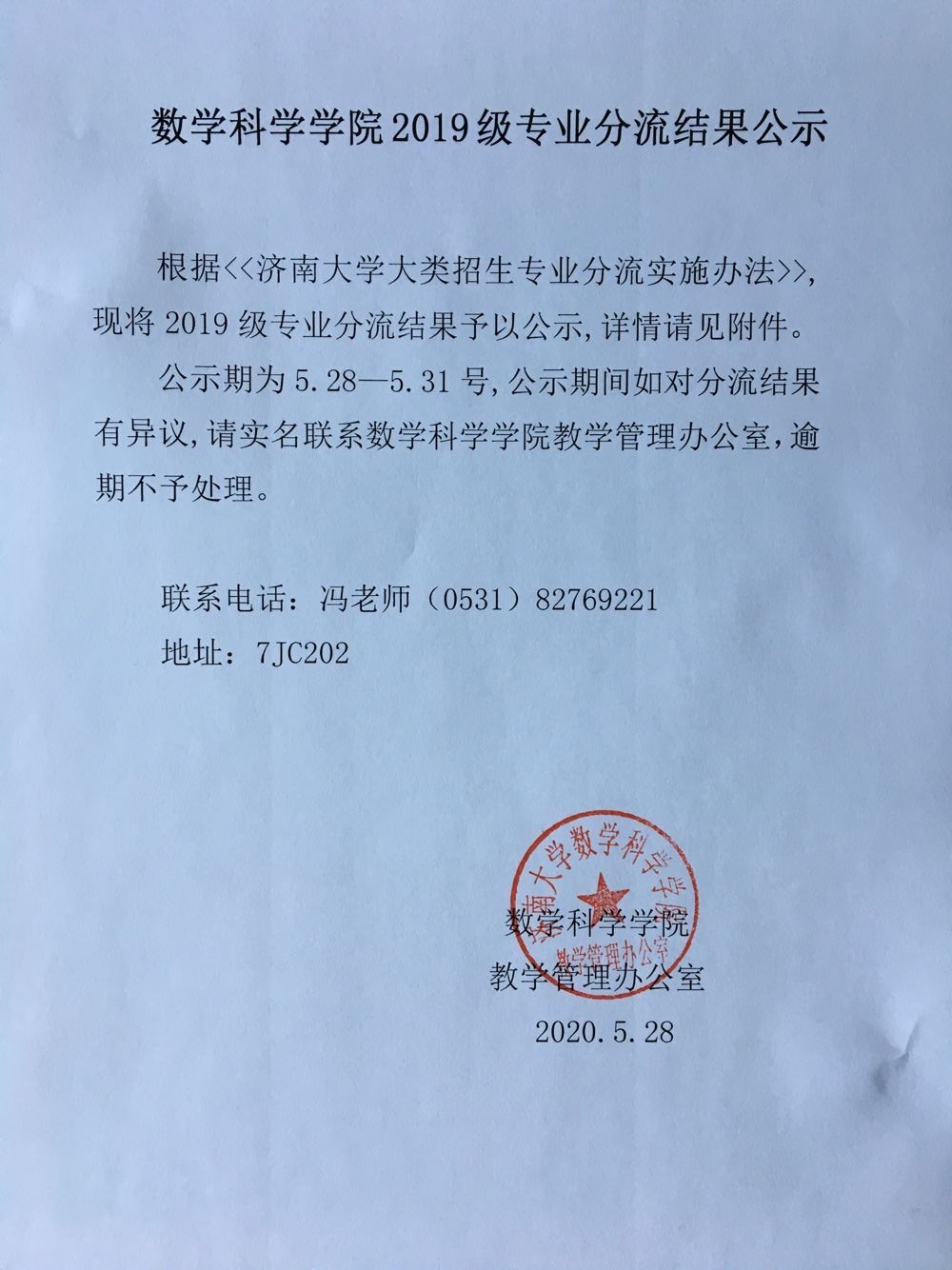 91福利 2019级专业分流结果公示