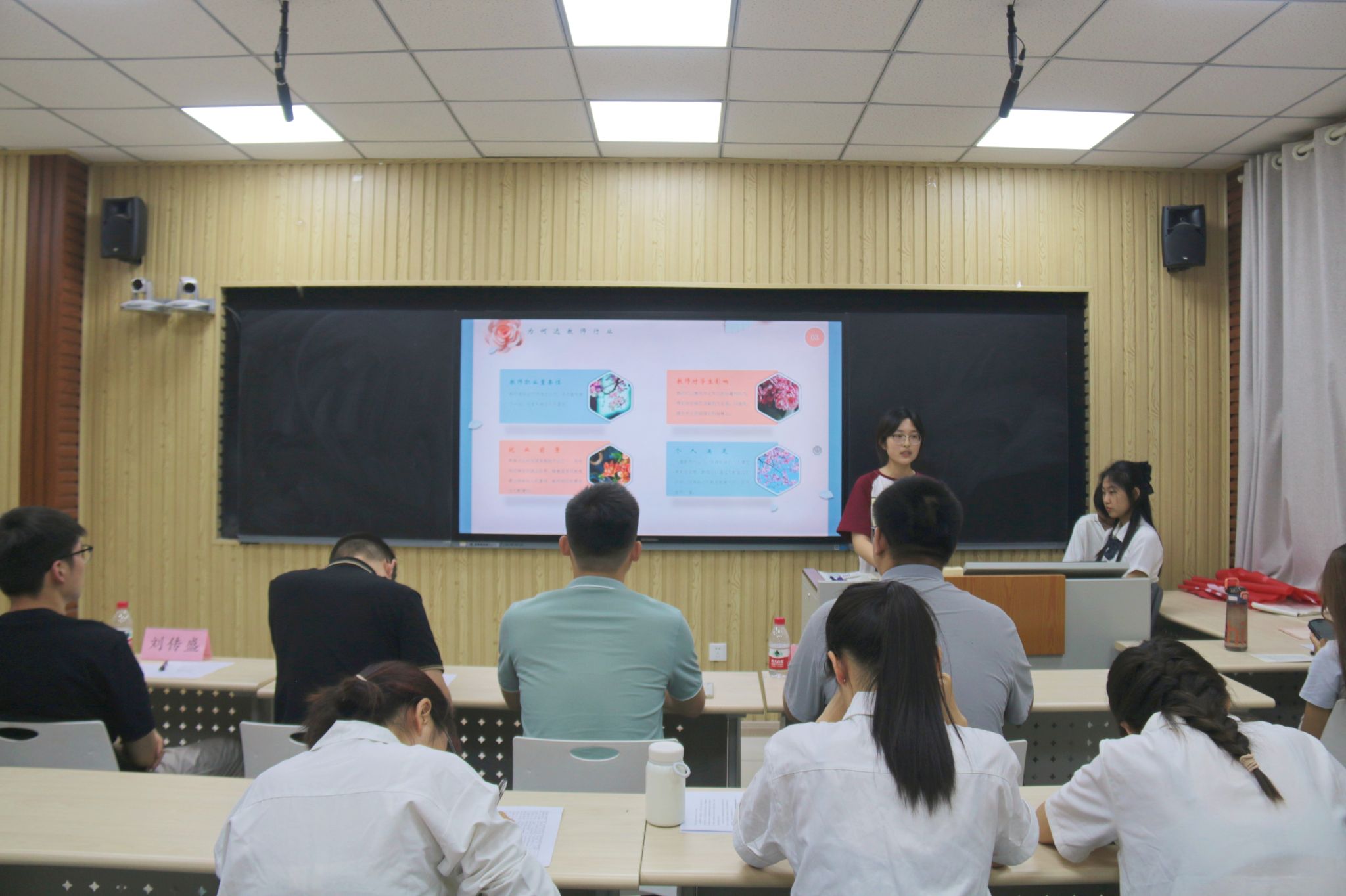 团委6月16日在学院二楼智慧教室举办 “我的教师梦”主题演讲比赛。学院青年教师、2021级辅导员沈云柱老师、2023级辅导员李宁老师以及学生组织代表参加活动并担任评委。