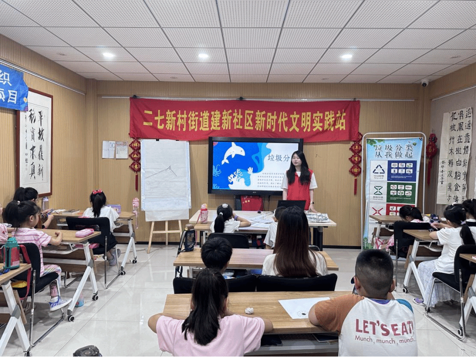 青年志愿者协会于7月15日联合金数2201团支部到建新社区党群服务中心开展宣讲活动。
