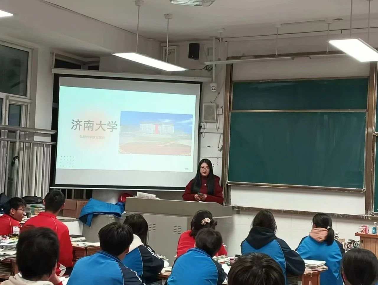 本次活动中,实践队成员们回访母校师长,汇报自己的学业情况,积极听取师长的建议与指导,并向他们表达真挚的感恩与祝福,展现济大学子与母校之间浓厚的师生情谊。在向母校学子宣讲时,实践队成员从济大悠久的办学历史、科学的专业设置、优美的校园环境、丰富的校园生活等多个方面进行宣讲,站在不同角度向母校学子展现出济大独特的校园风采。此外,实践队员们通过传授自己的高考备战方法,分享学习经验,给予母校学子强大的学习动力,激发他们的学习热情。同时,实践队成员针对高考志愿填报、专业选择等问题向母校学子做了详细的解答,提出宝贵建议,使其收获满满。