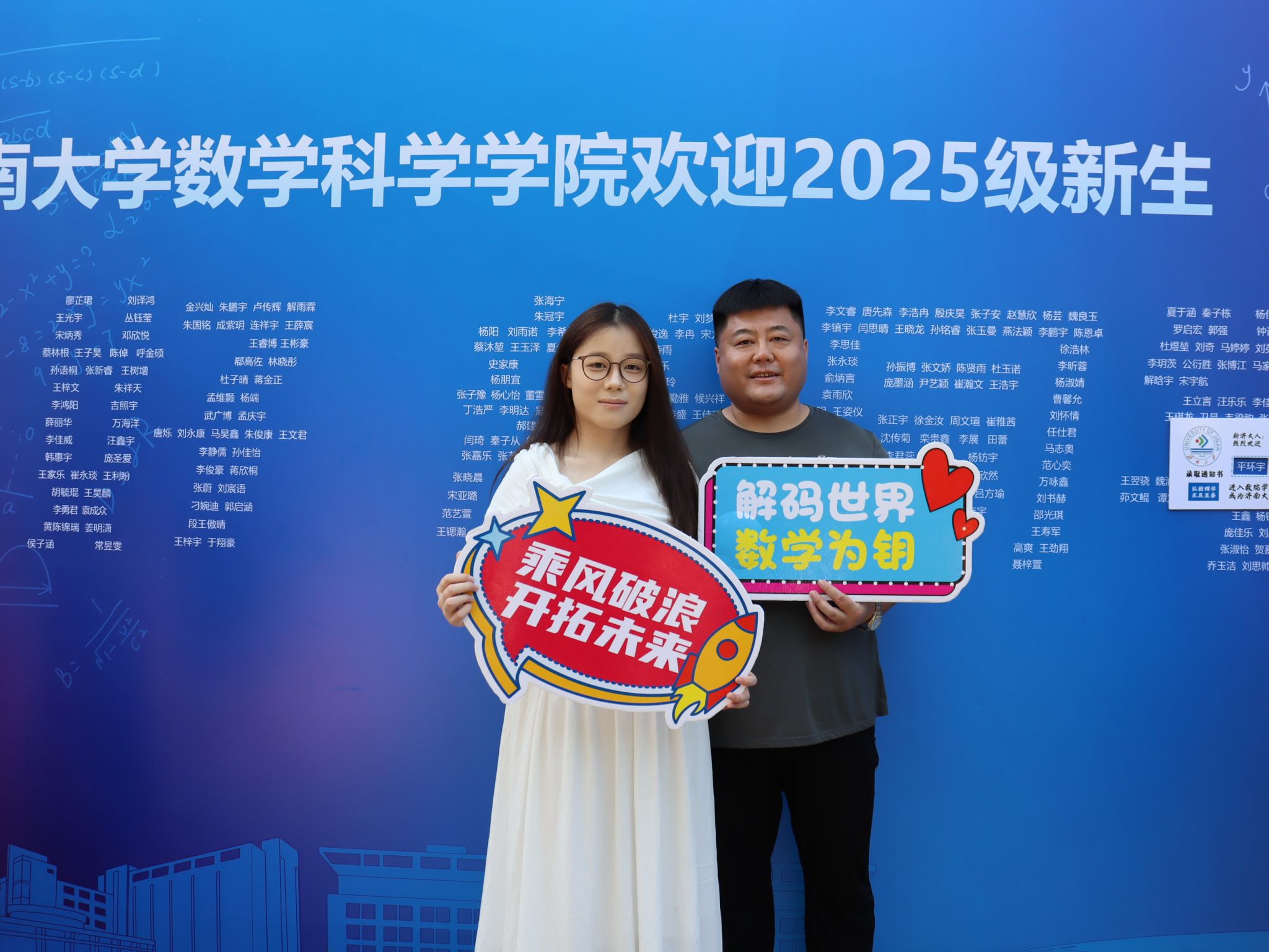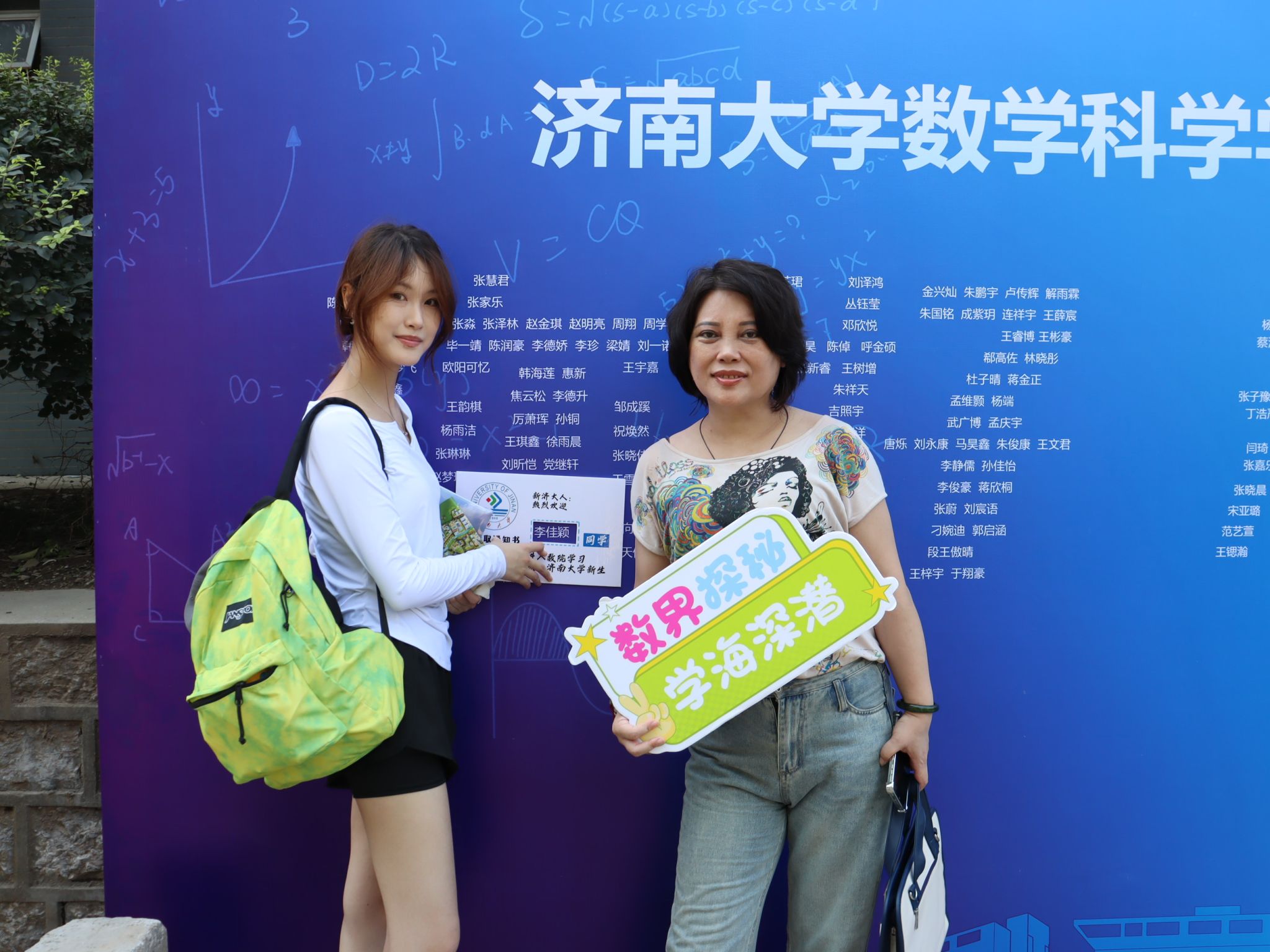 此次迎新活动,学院特别融入数学文化特色元素。在报到入口处,以数学公式、数学家名言设计的文化展板吸引众多新生驻足,在了解数学历史、感悟数学魅力的同时,激发新生对专业学习的热情。在互动区,专属姓名墙与创意标签别出心裁,留下初入校园的专属印记,并与姓名墙合影,定格与91福利