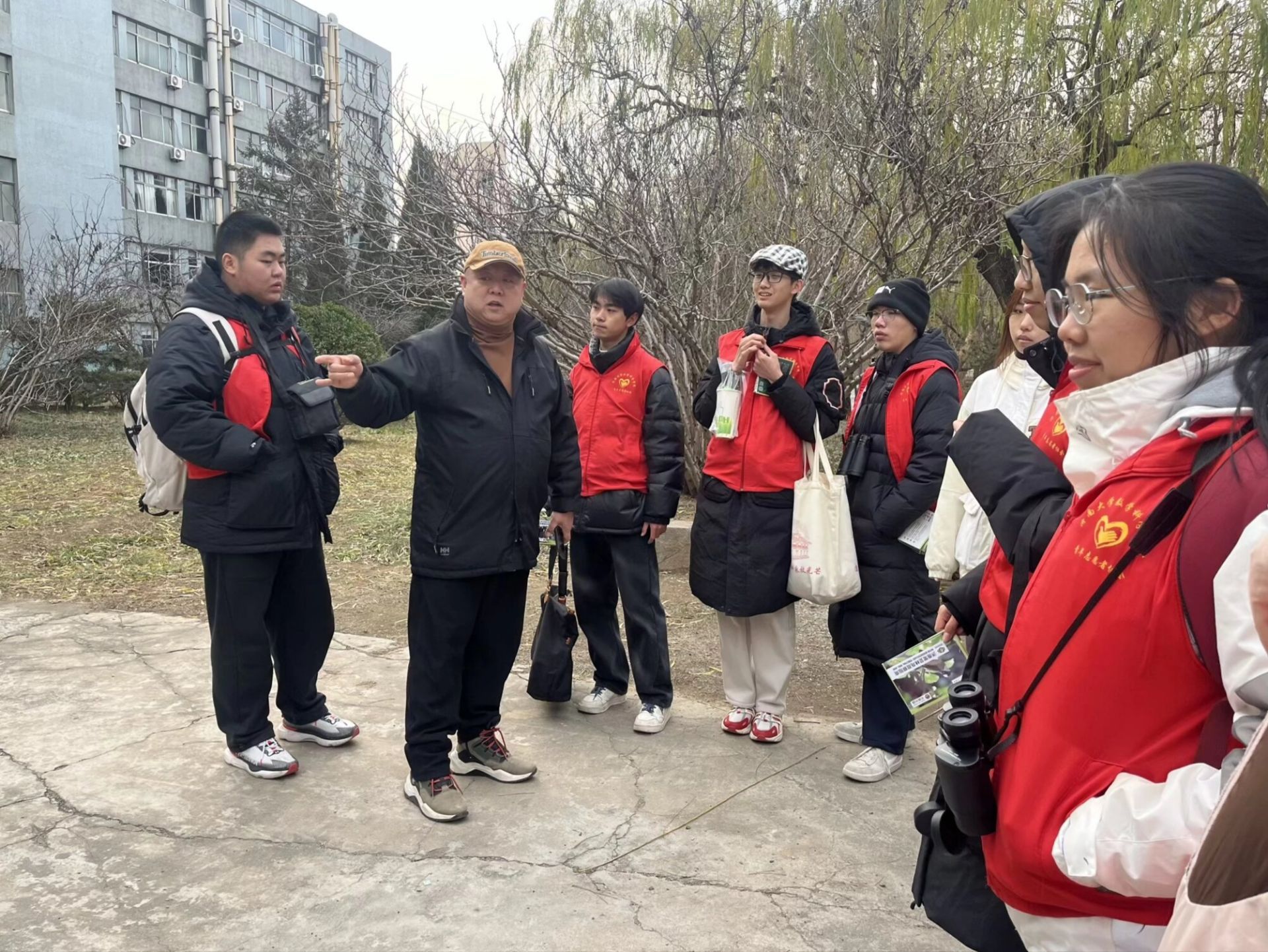 活动伊始,志愿者们在户外开展实践学习。指导老师讲解无痕观鸟原则,演示望远镜使用方法,并简要介绍校园常见鸟类。随后,同学们在老师带领下实地观察校园鸟类,将理论知识与自然景象相结合,感受生物多样性。户外环节结束后,全体志愿者返回室内,讲师介绍“鸟达人”小程序的使用方法,并围绕“寻鸟入境、观鸟获趣、识鸟知性、赏鸟品德、鸟达人入门”五个维度,系统讲解如何科学、文明地观察和理解鸟类,引导同学们从自然体验中领悟生态伦理,树立人与自然和谐共生的责任意识。