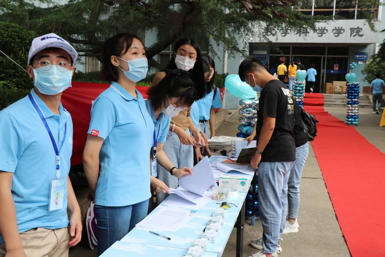 团委书记赵华磊,同时担任此次2020年的辅导员,询问新生和家长,并给予了美好的祝福。新生和家长一下车,众多的迎新志愿者马上微笑着迎上去:“你好”,“欢迎来到学校”。这样亲切的问候,让新生感受到了学院的热情。校团委学生会的学长学姐们给不厌其烦地新生、家长回答着他们提出的各种问题。学生会的学长学姐主动帮着拎行李,一路谈笑风生,学长学姐的热情也让新生对大学生活充满了期待。新生还在自己的大学留下了有纪念意义的照片。学院领导老师对他们寄予厚望,希望他们热爱现在美丽的校园,同时更希望他们收获知识。