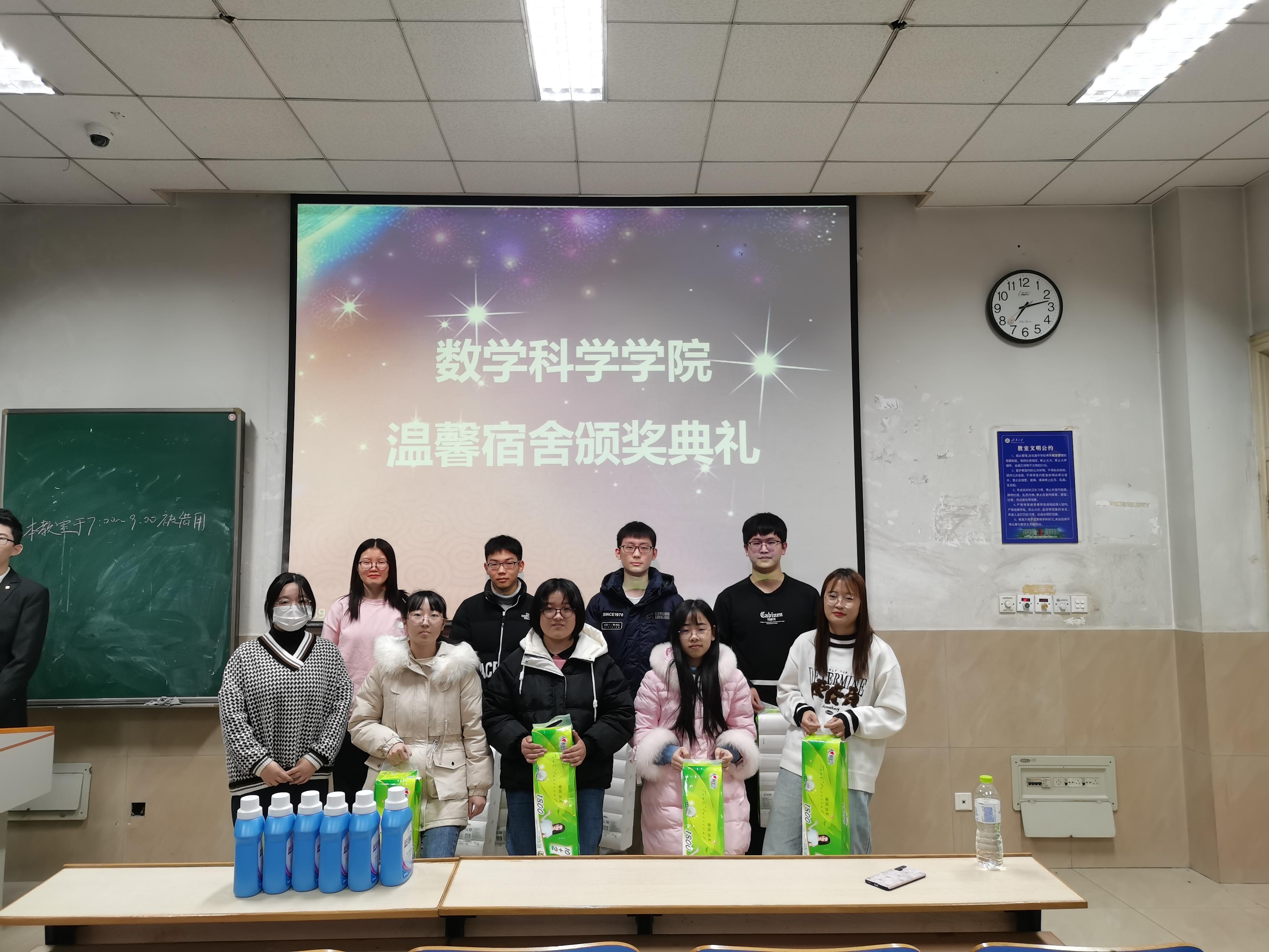 组织温馨宿舍活动评比并于12月2日晚在第一教学楼108教室组织举行颁奖典礼,19级辅导员房琳琳出席颁奖活动。