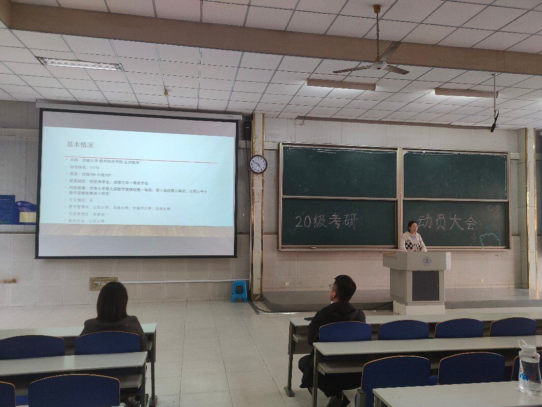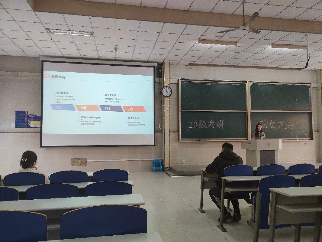 此次动员大会,使同学们更加了解了保研过程以及考研准备工作。优秀学长学姐的经历和经验激励了在座的同学们,使同学们对考研的认识更加深入,也使同学们学习到了很多学习方法和经验,为后续的学习指明了道路。