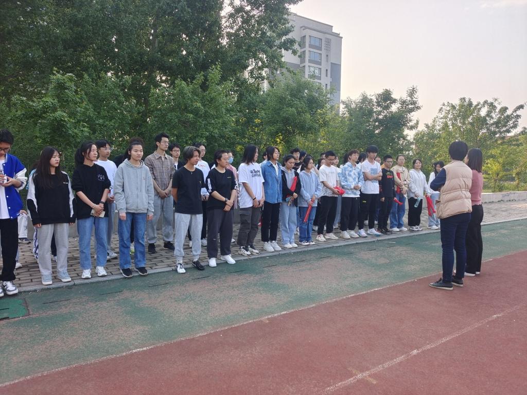 于4月25日开展运动员赛前训练、方队演习及团体操彩排,党委副书记、副院长张沂红和团委书记于洋到场指导慰问。