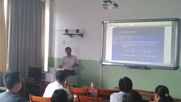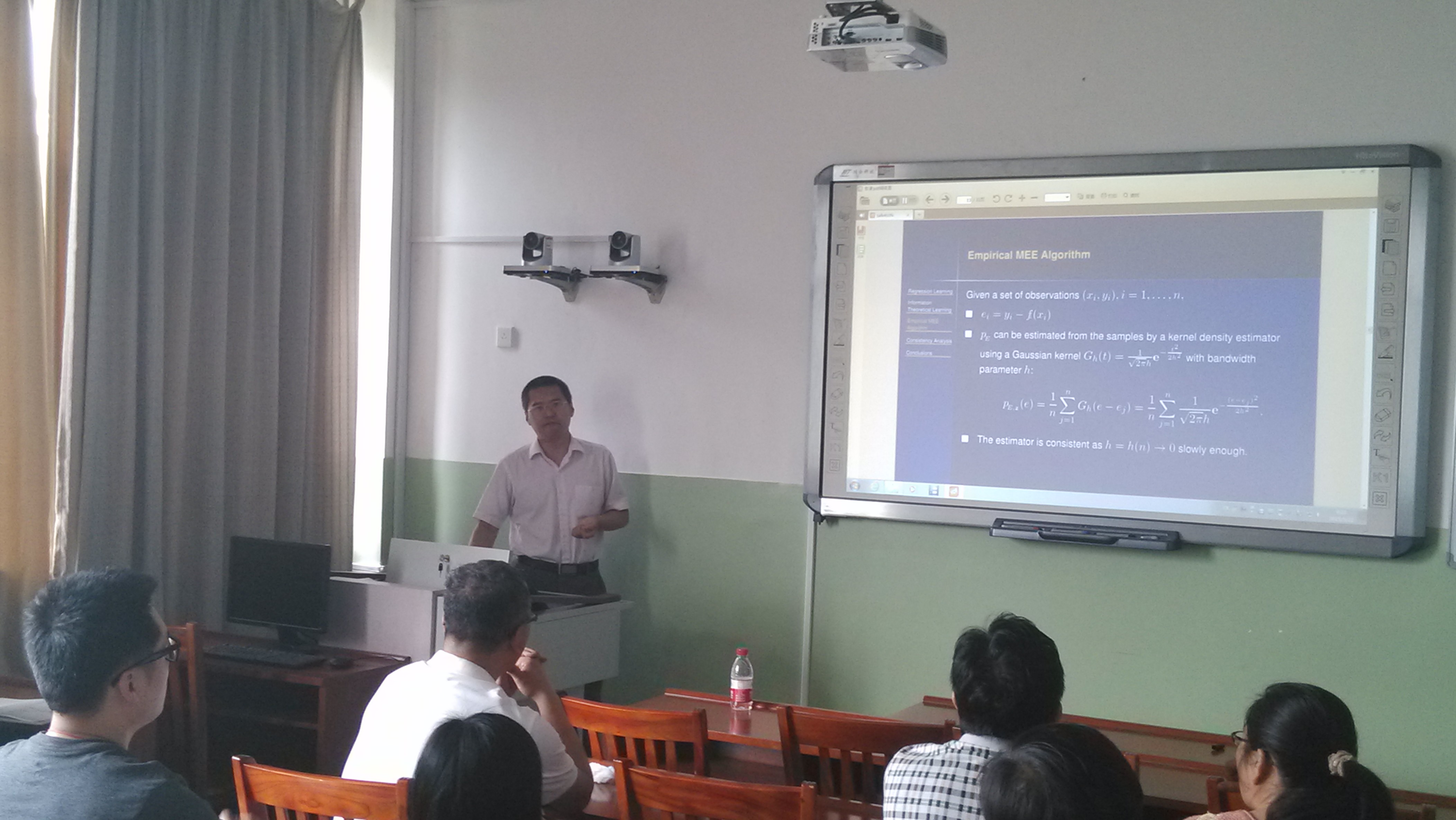 吴强博士的报告题目为《Consistency Analysis of the Minimum Error Entropy Algorithm》。报告中,吴强博士详细介绍了回归学习、基于信息论中Shannon熵与Renyi熵的MEE回归算法的由来、以及MEE回归算法的一致性分析,并提出了进一步思考的一些问题。会后,91福利